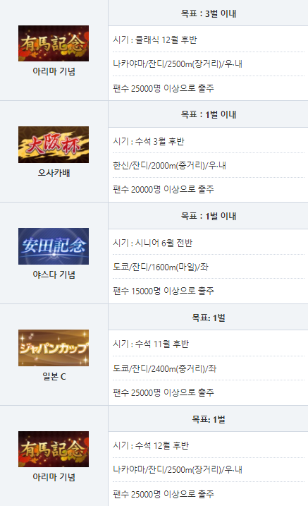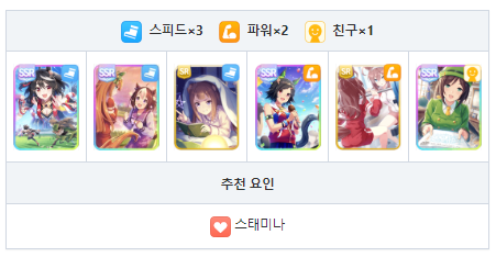 [중거리 => 스피드 1200 / 스태미나 600~1000 / 파워 600~1200 / 근성 300~400 / 지능 300~1200]