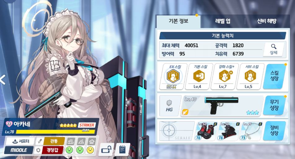 공략 영상은 4성 + EX 스킬레벨이 낮아서 사용을 하지 않았습니다.