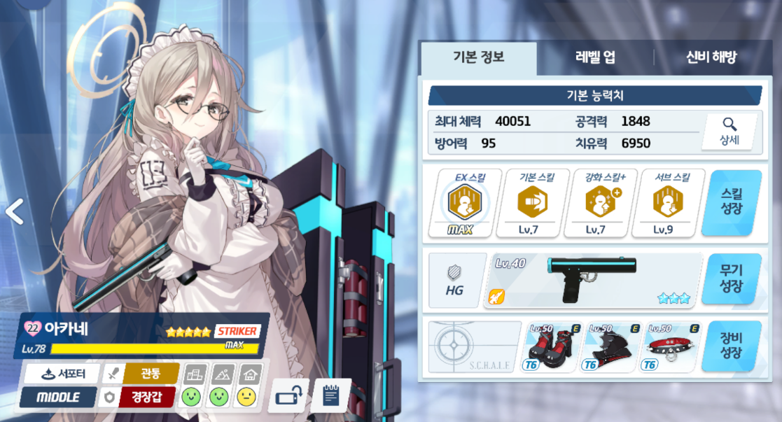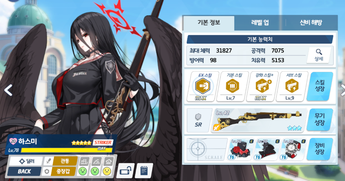 하스미 5성 전무3(40) M7M7 => 동영상 클리어 당시 스펙