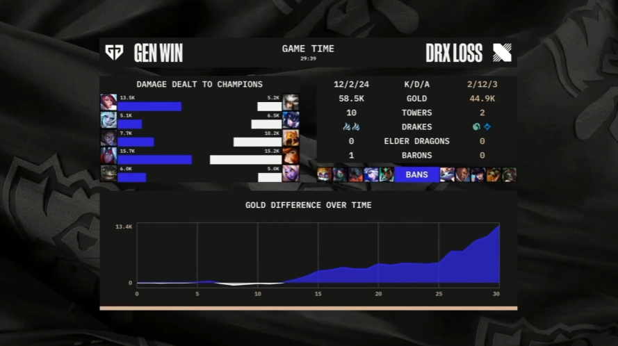 DRX : 루시안 => 신지드 => 라이즈 => 나르 => 카밀 벤
