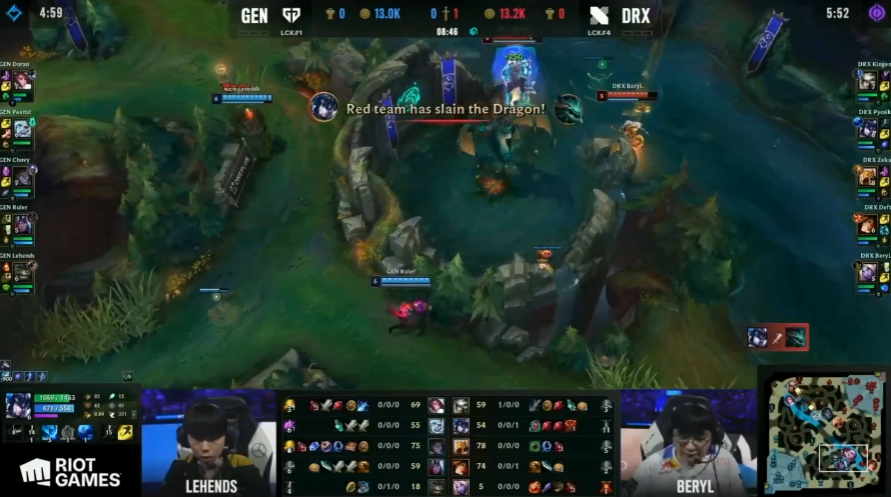 DRX : 유미 => 루시안 => 케이틀린 => 레넥톤 => 나르 벤