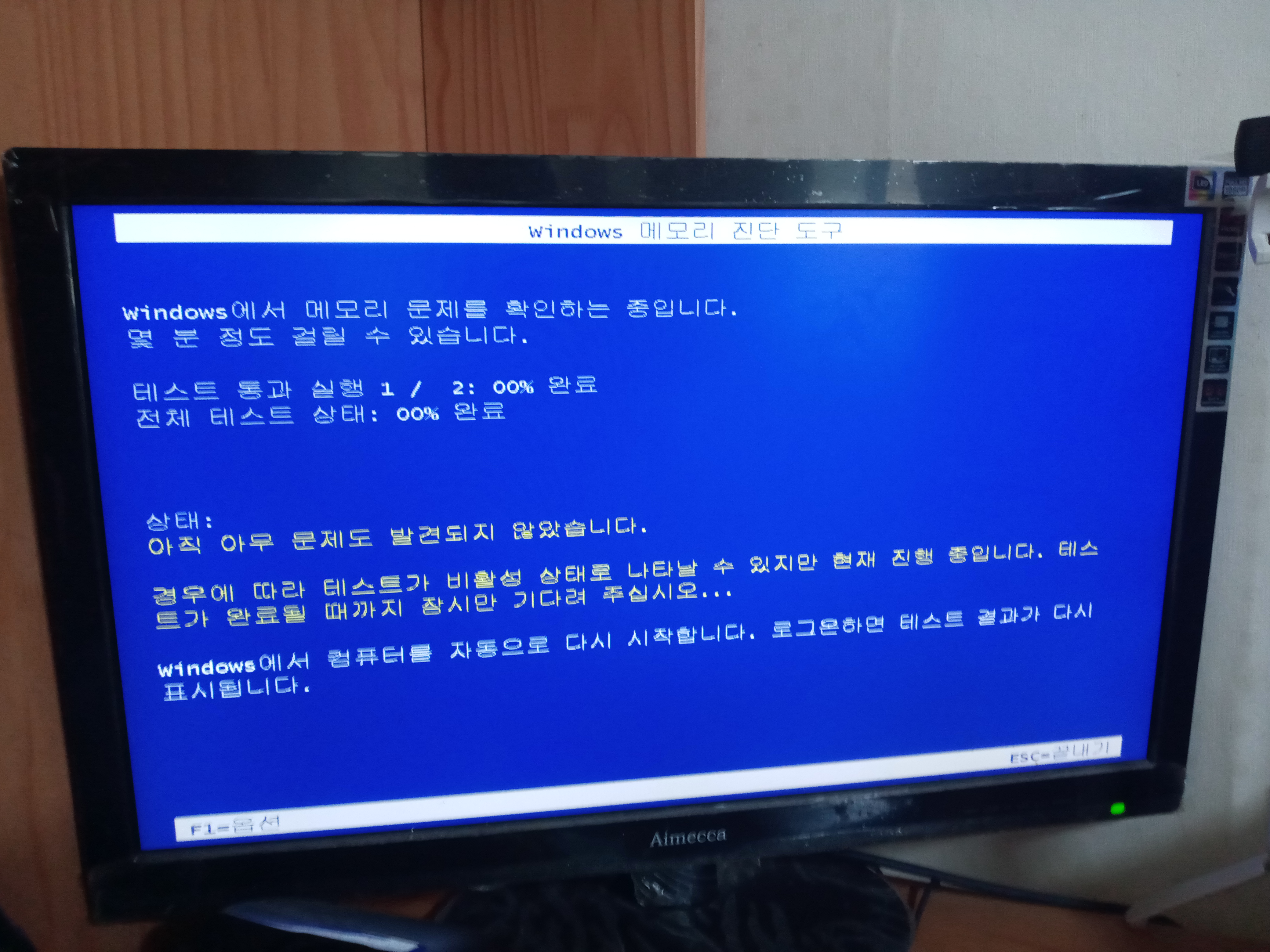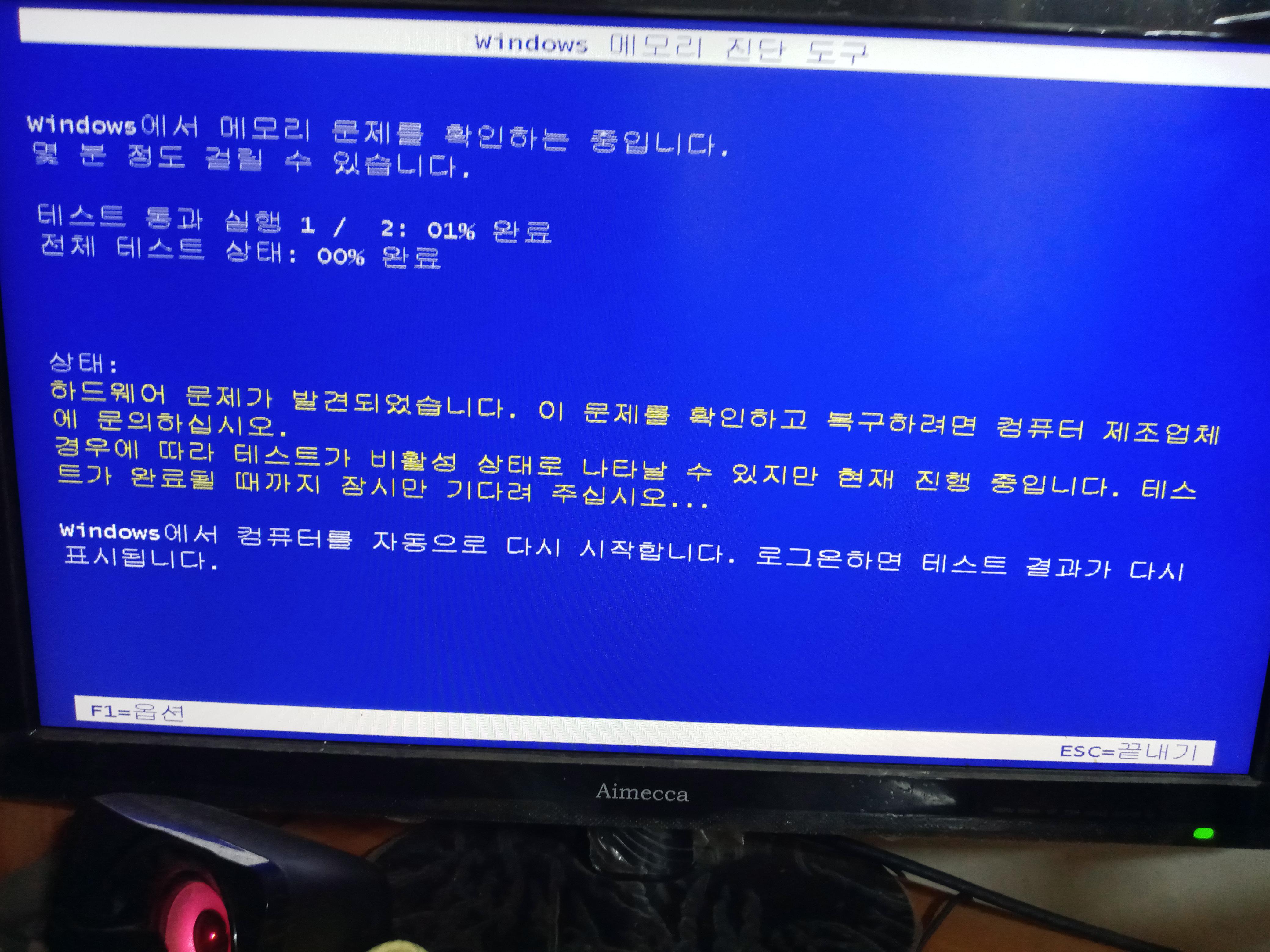 windows 메모리 진단 100% 완료될때까지 꼭 기달리세요.