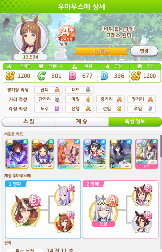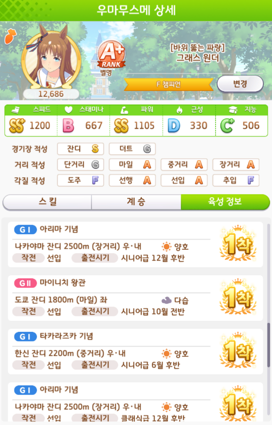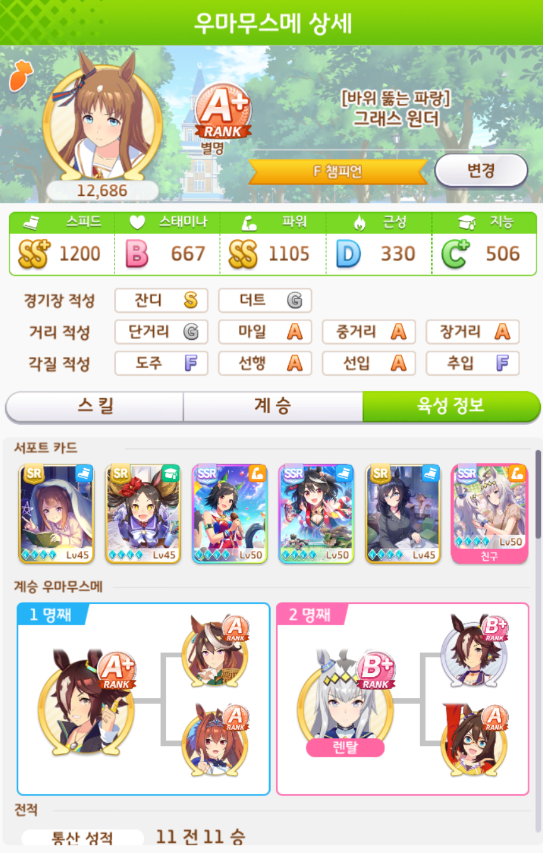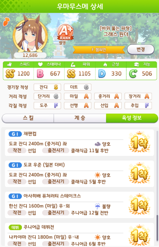 (장거리가 A로 되어 있지만 장거리 육성은 비추천합니다)