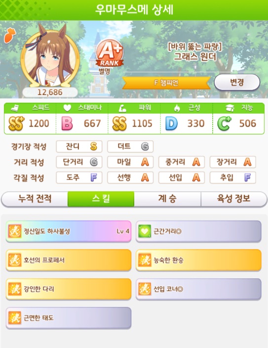 계승 육성 우마무스메가 상성이 좋고 그런게 없어서