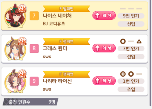 9번 나이스 네이처(역병마라서 거의 9번 고정)