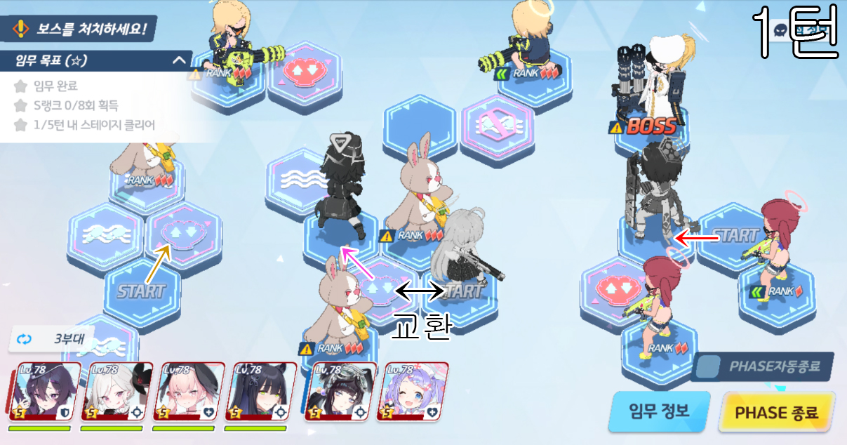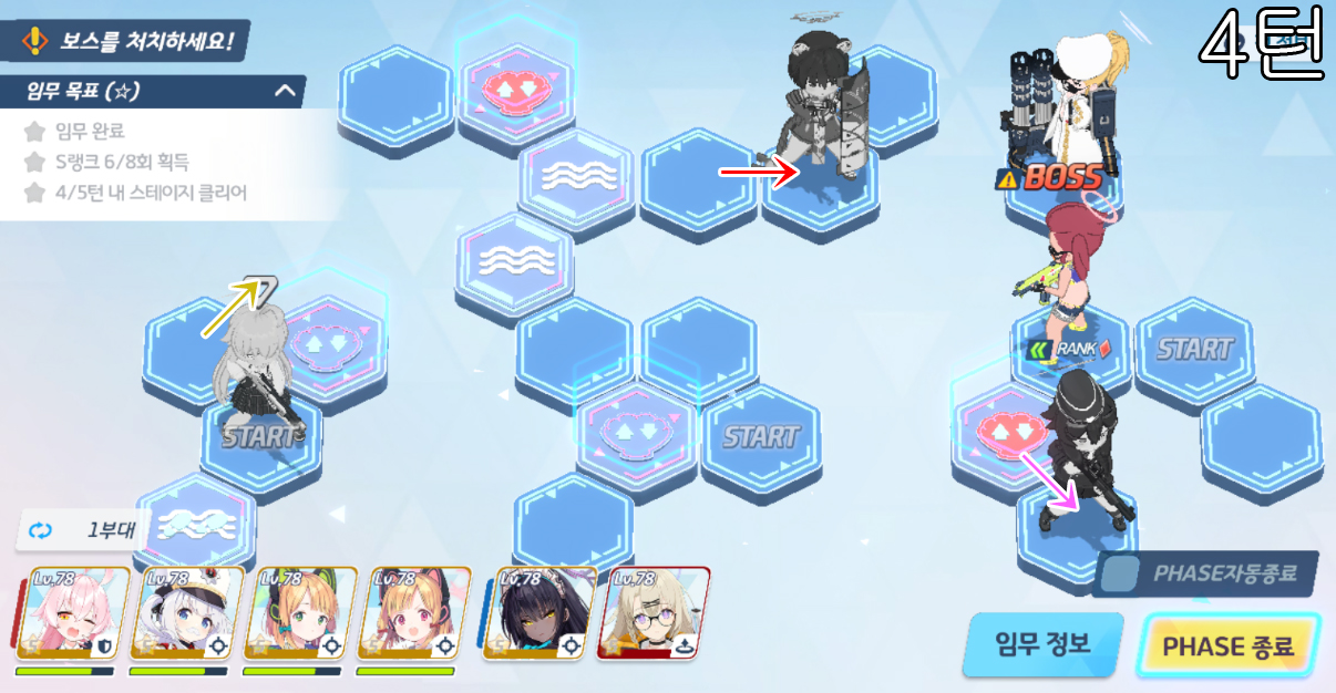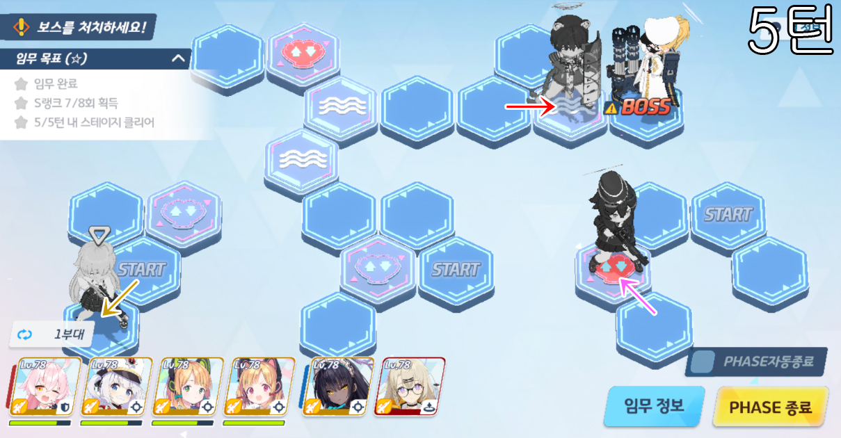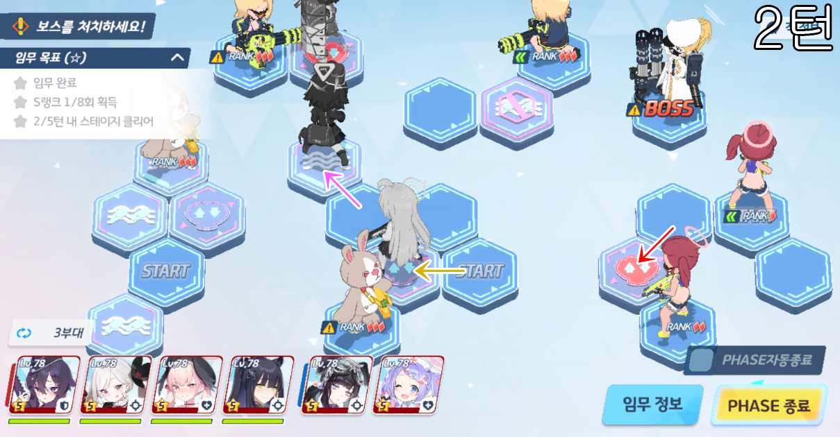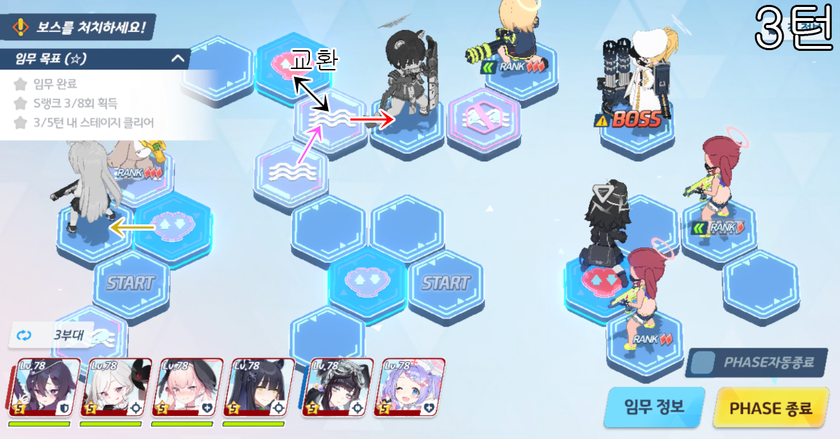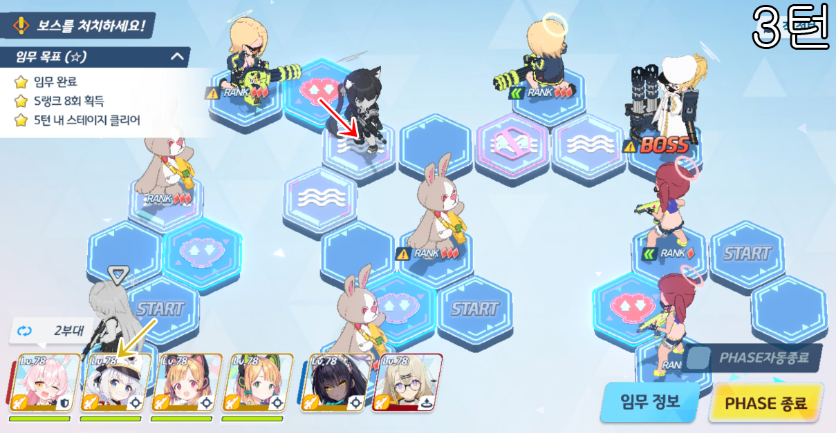 호시노 관통팀 3턴까지 이동 후 끝날때까지 이동하지 않습니다.