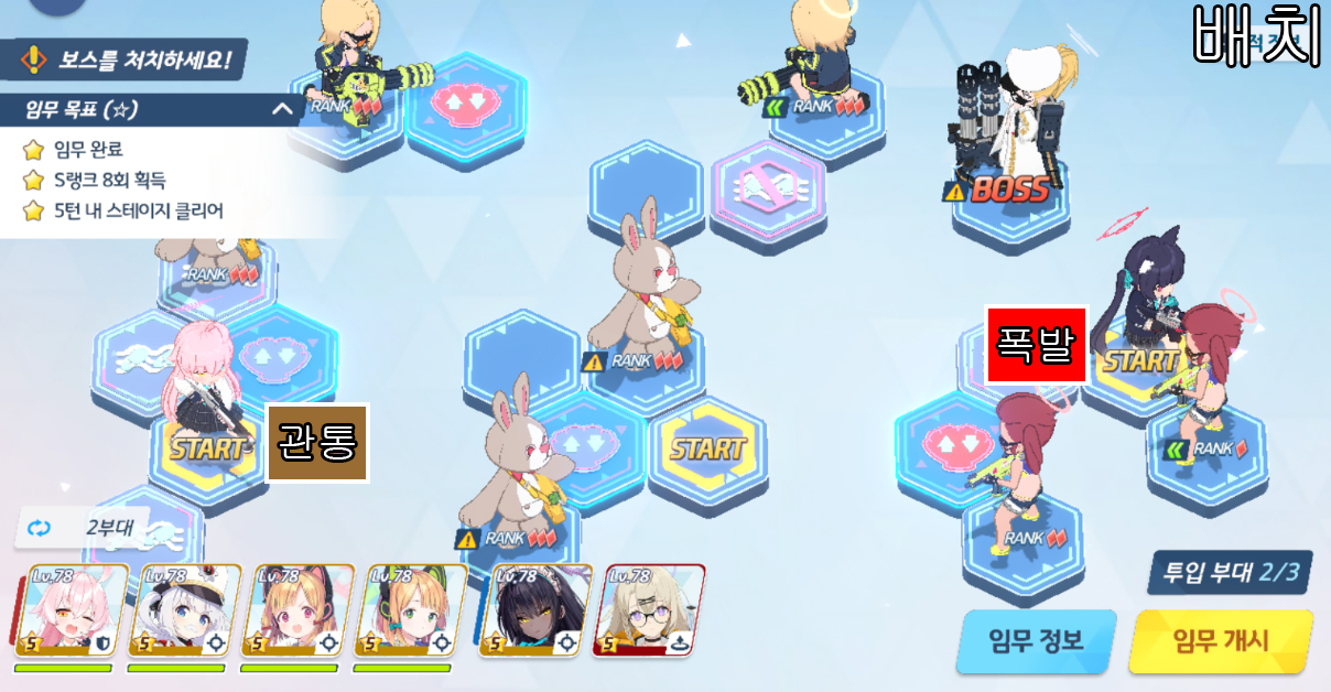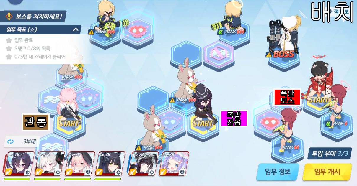 호시노 위치 => 관통 1팀(아무거나 배치 전투X)