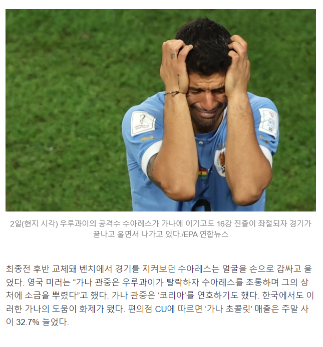 "가나 관중은 우루과이가 탈락하자 수아레스를 조롱하며"