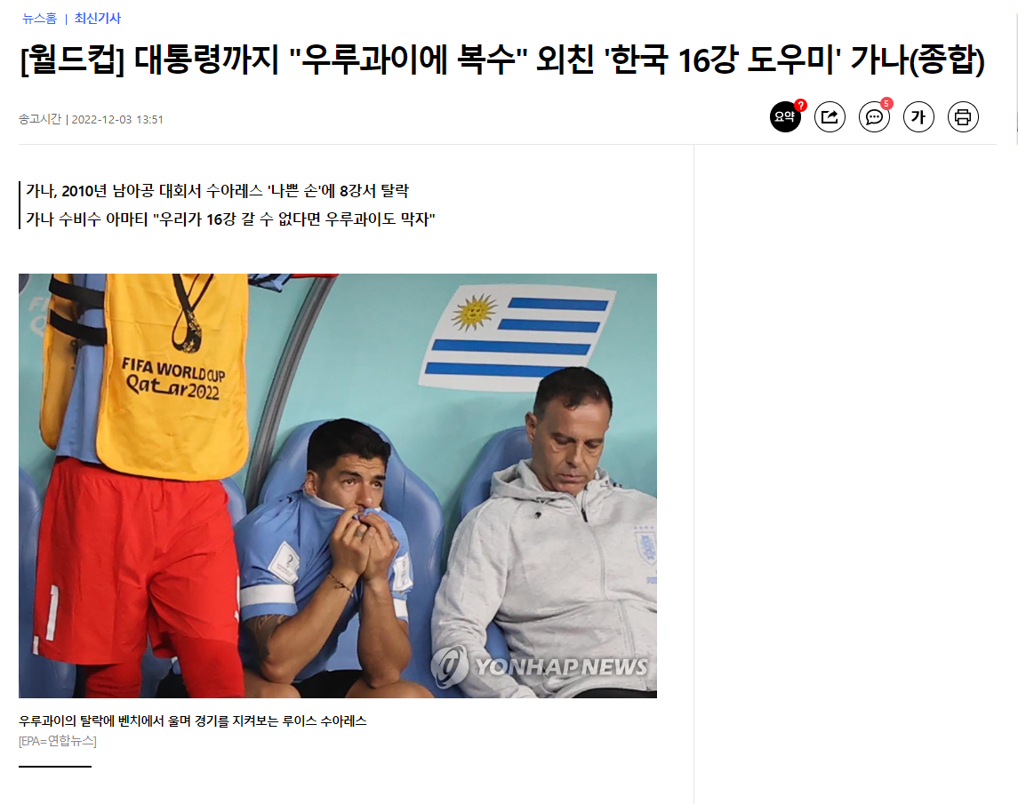 대통령까지 "우루과이에 복수" 외친 "한국 16강 도우미" 가나