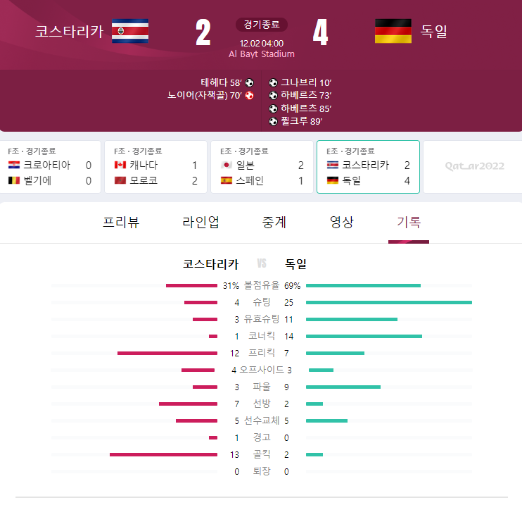 | 2022 카타르 월드컵 11일차 경기결과 [C D조] (0) | 2022.12.04 |