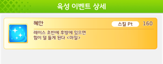 1순위 = 스킬 중점으로 정리했습니다. 육성 도중에 얻을수 있는 추가 스킬입니다. 이벤트에만 얻을수 있는 서포트 카드입니다. 서클포인트 교환으로 얻을수 있는 서포트 카드입니다. 한국서버 +