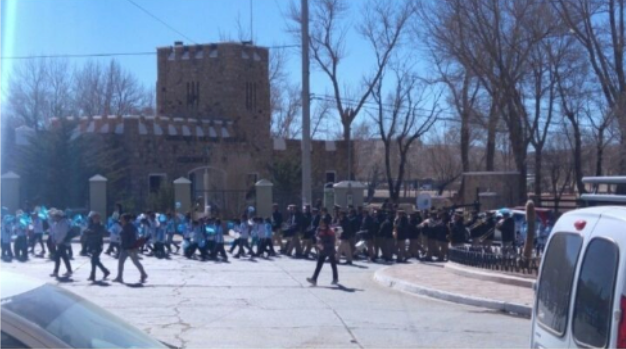 메시의 은퇴를 막는 행렬 시위집행을 하고 있는 모습