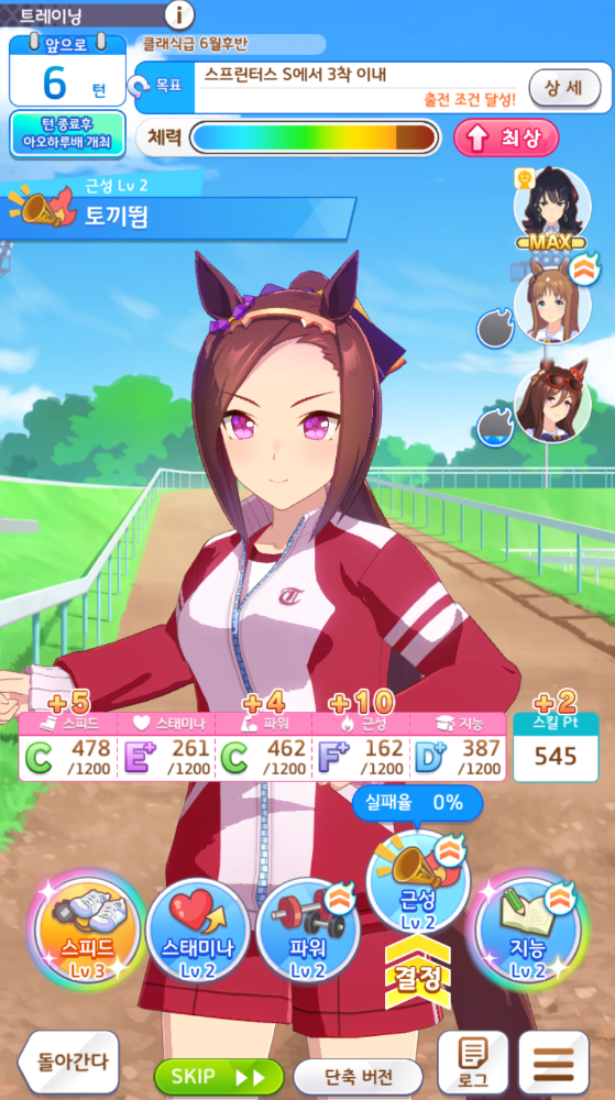 스피드2 + 스태미나1 + 지능2 + 친구1