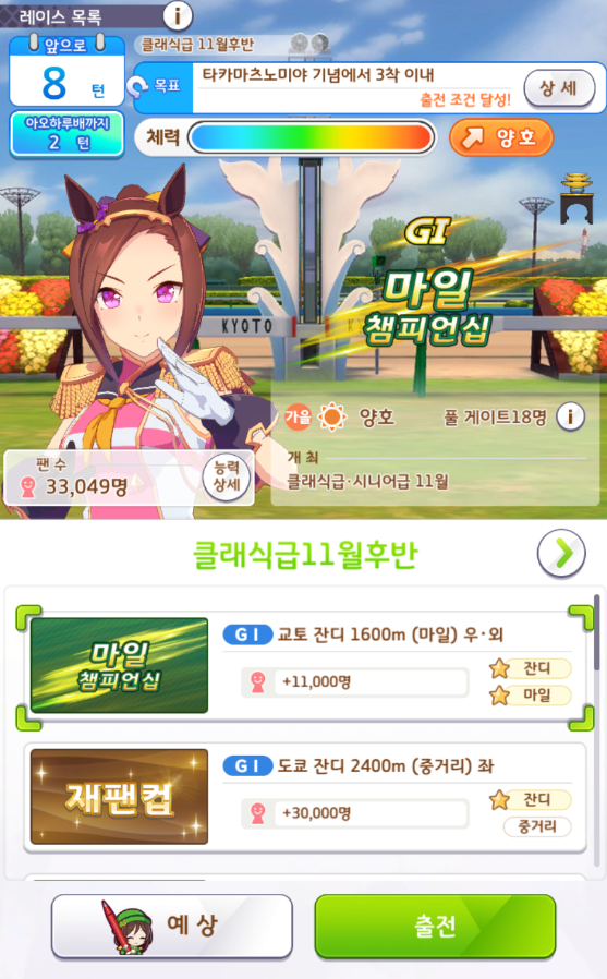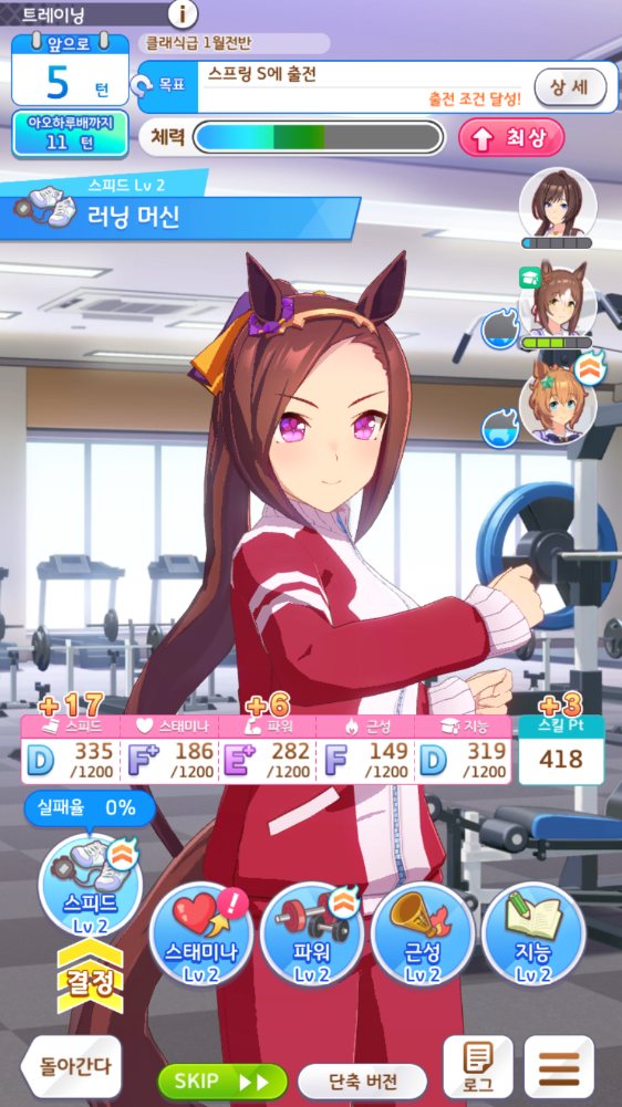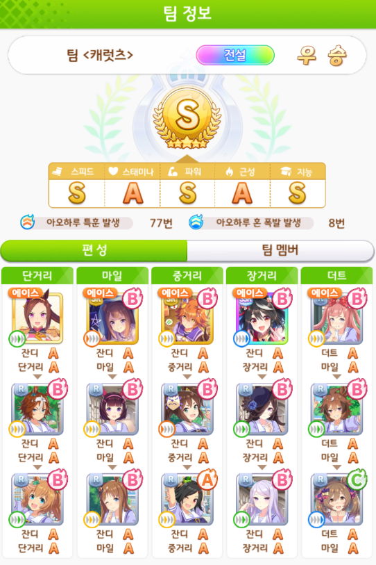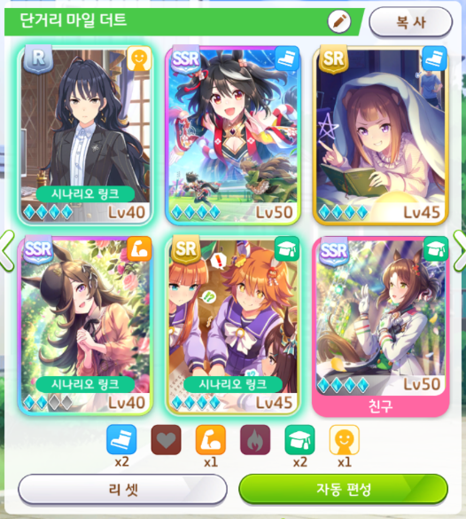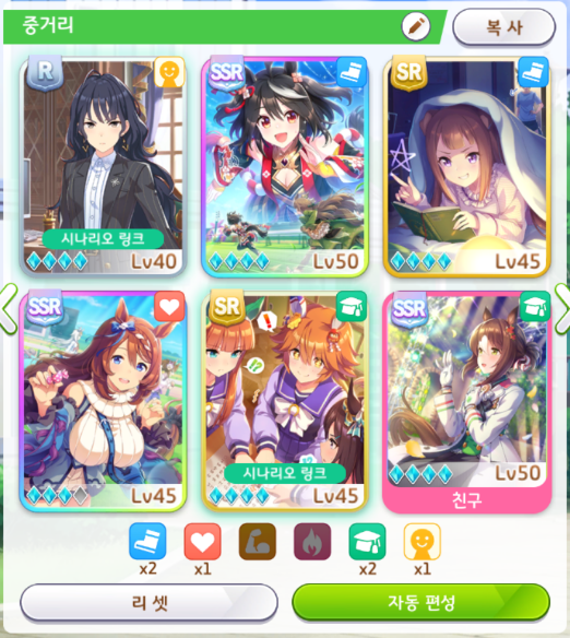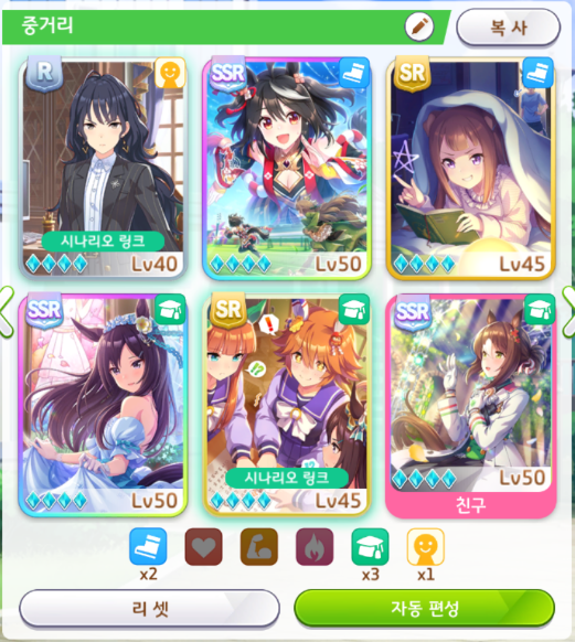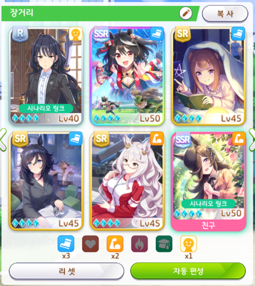 서포트 카드 편성도 잘 보셔야 합니다.