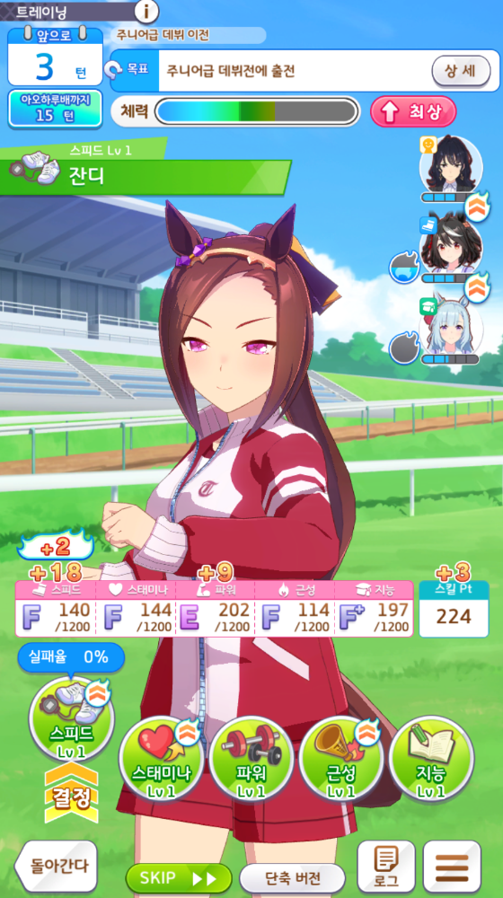 주니어때는 잘 나오면 근성도 서슴없이 선택합시다.