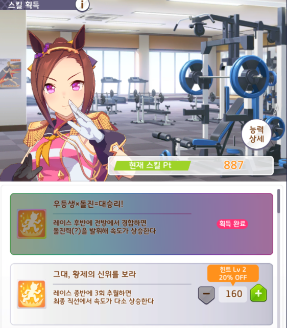 이 경우는 우마무스메 캐릭터 자체가 금힐스킬을 가진 캐릭터들의 특권입니다.