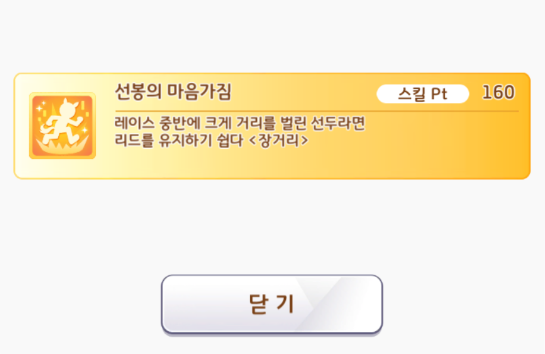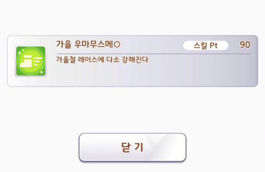 스피드2 / 스태미나1 / 파워1 / 지능1 / 친구1