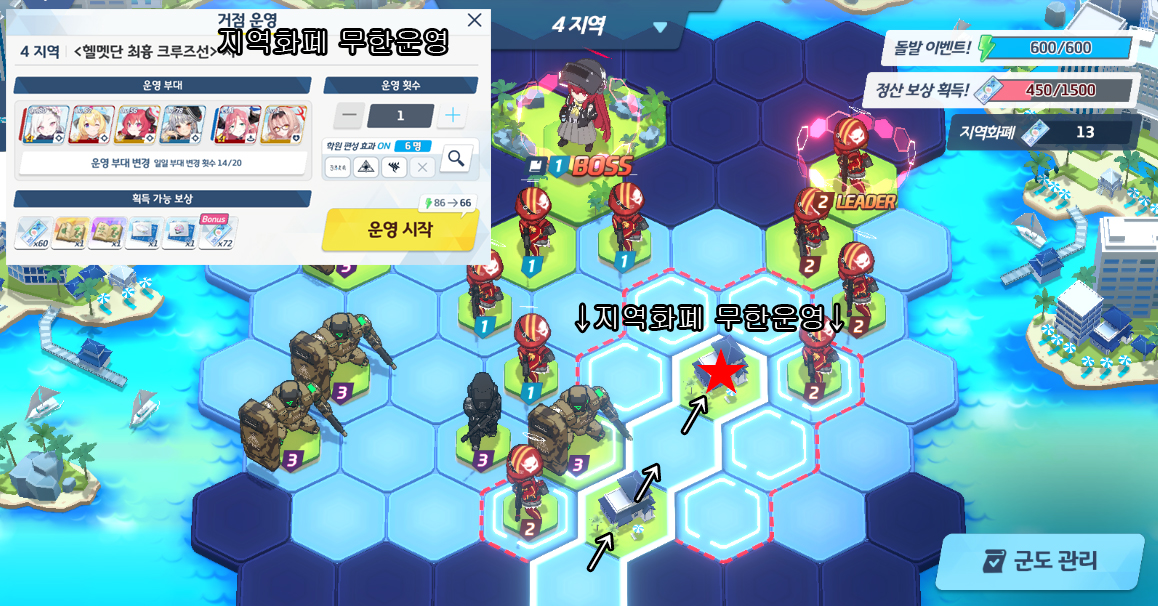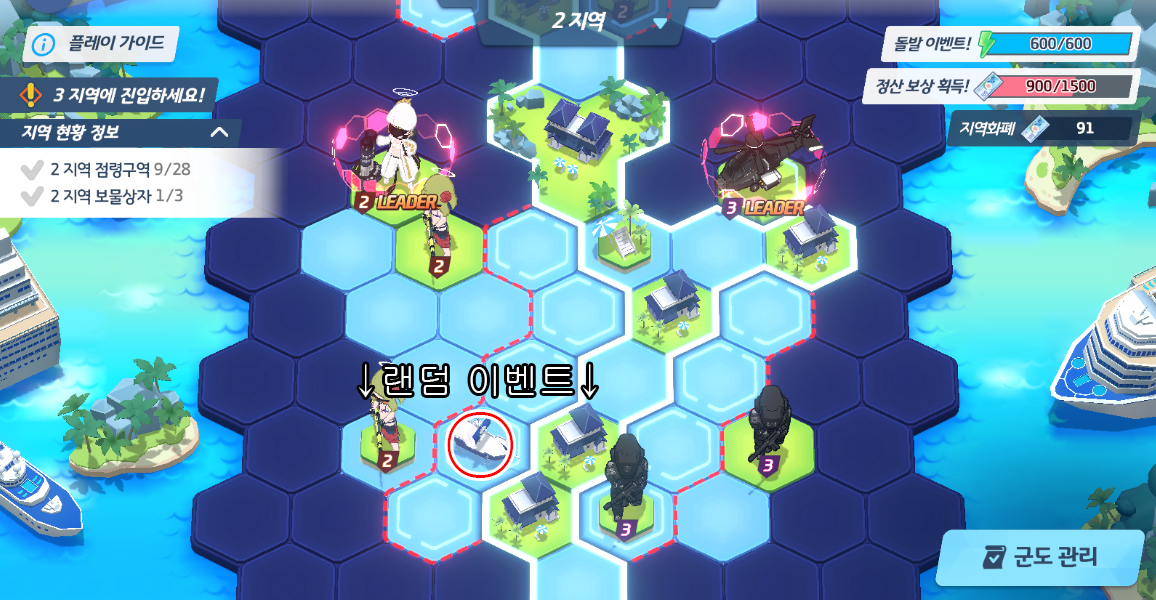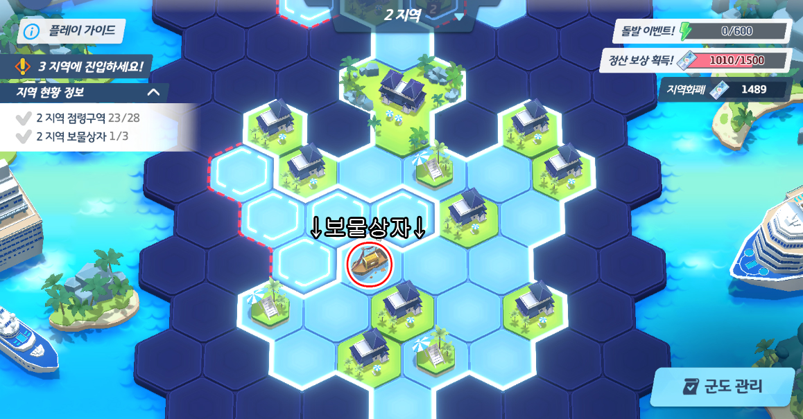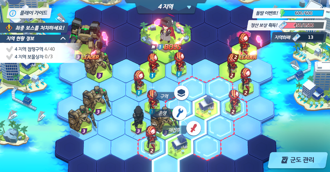 2. 파밍한 지역화폐로 1~4지역까지 모든 (타일 + 몹) 점령하기