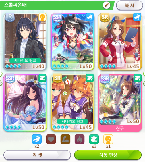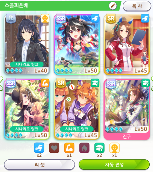 그외에 나머지 2명은 본인이 육성하고 싶은 우마무스메로 하셔도 됩니다.