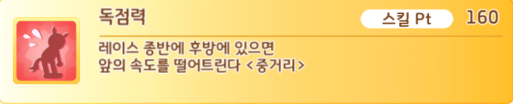 스피드15% + 지능15% 보정으로 육성 난이도가 매우 쉽습니다.