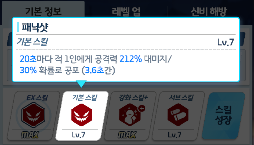 카요코 패닉샷 1스킬 공포 4연속 적중(무조건) => 1순위 100% 되야하는 조건