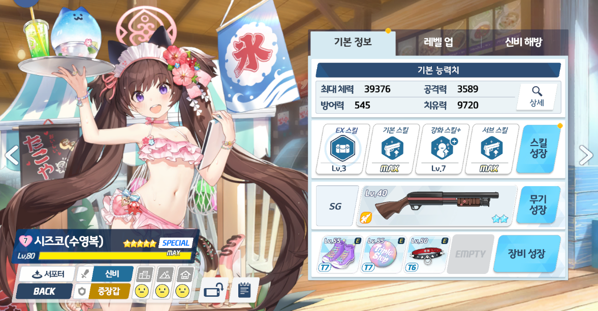 시즈코(수영복) EX 최소 3레벨로 잡았으며,