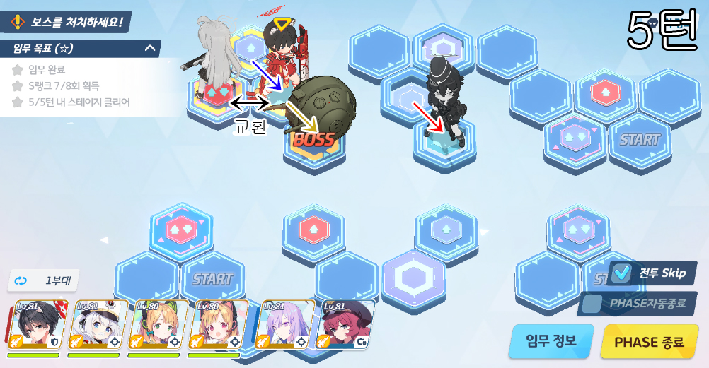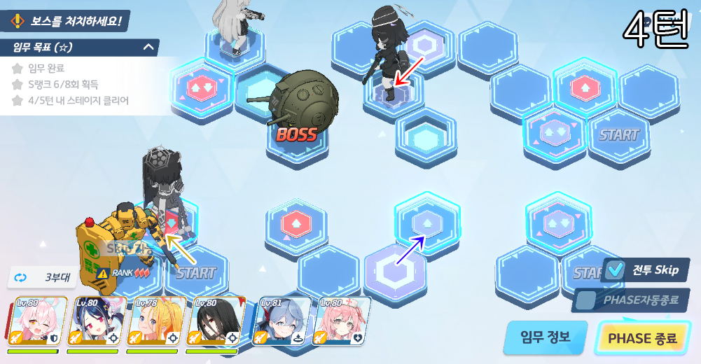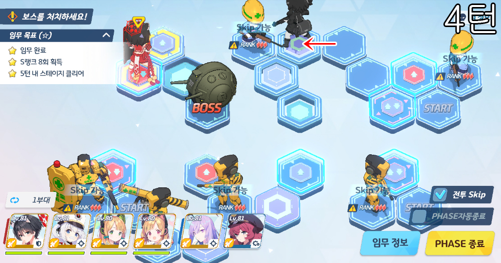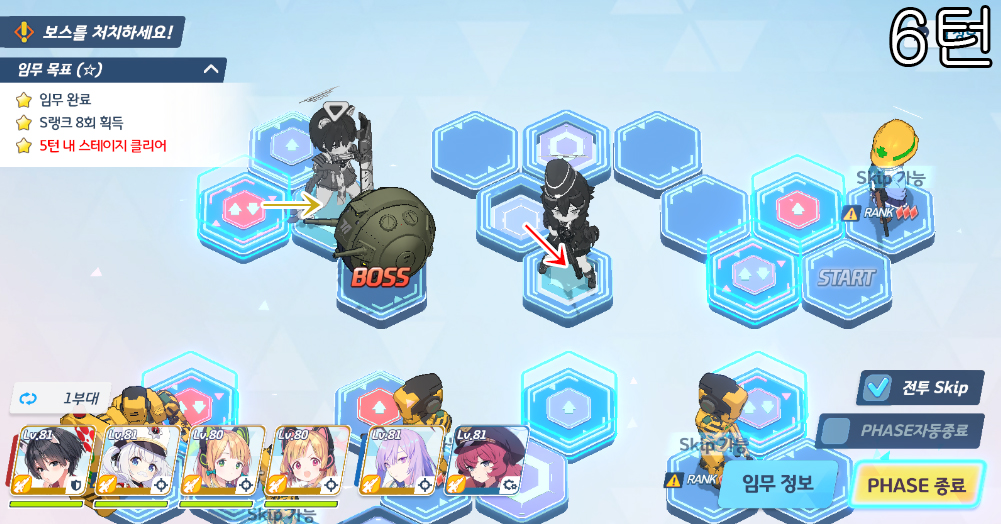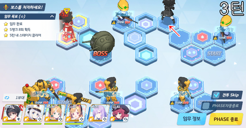 츠바키 대각선 오른쪽 아래 1칸 이동 후 보스와 교전으로 마무리합니다.