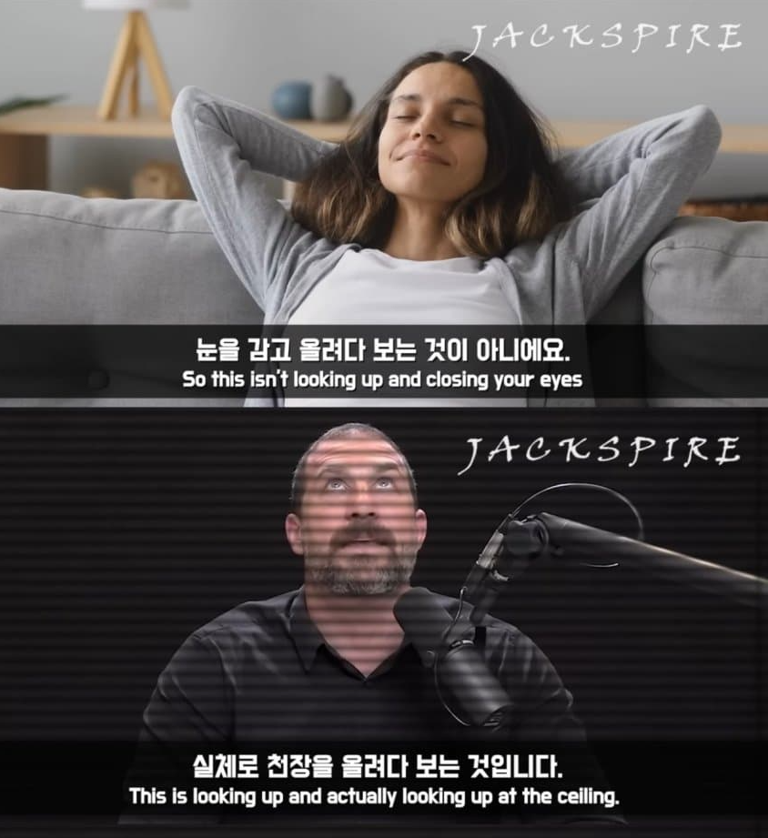 눈꺼풀이 닫히고, 턱이 내려갑니다.