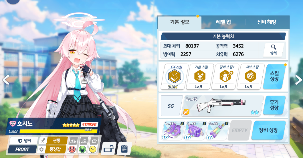 탱커 => 중장갑 > 경장갑 타입 캐릭터 / 특수장갑 비추천
