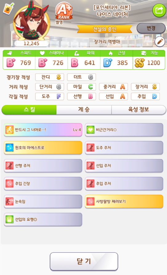 | [우마무스메] 챔피언스 미팅 카프리콘배 공략 (0) | 2023.04.16 |