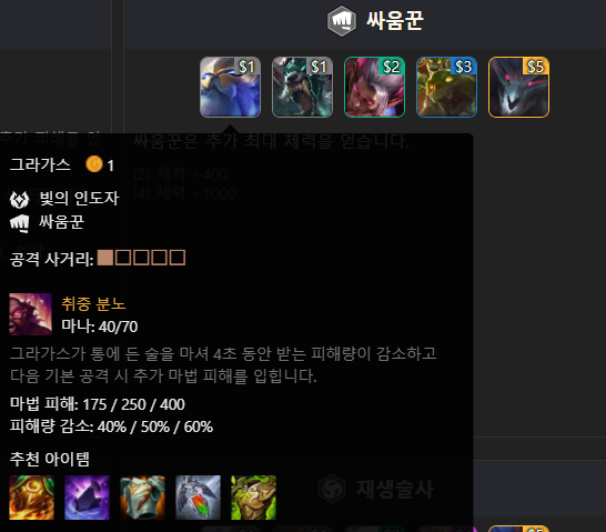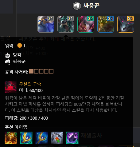 피해 + 기절 + 체력회복 + 막타시 스킬 재사용 / 탱커