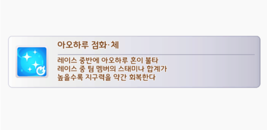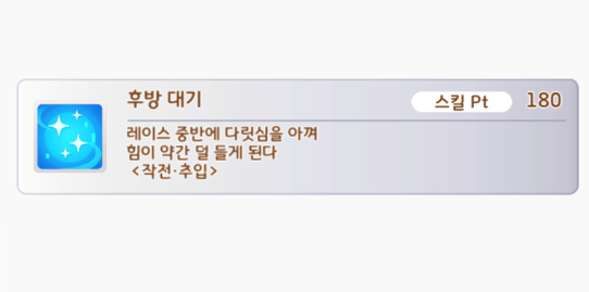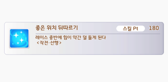 레이스 초반에 힘이 약간 덜 들게 된다 <작전 선행>