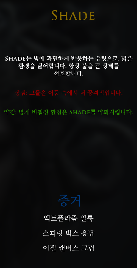 밝게 비춰진 환경은 SHADE를 약화시킵니다.