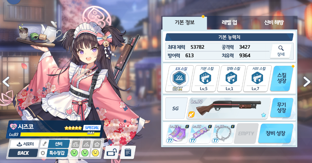 시즈코 EX 3레벨 - 체력 43000이상 (T5 목걸이 기준)