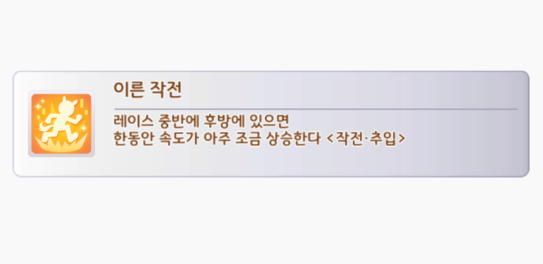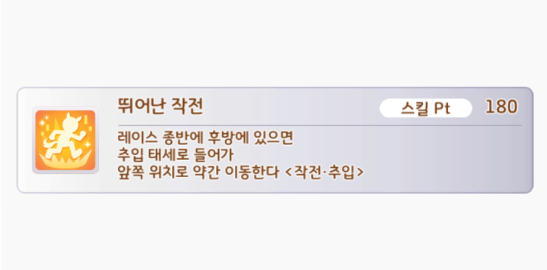 추입 / 레이스 중반 무작위 / 챔피언스 미팅 순위 6~9위
