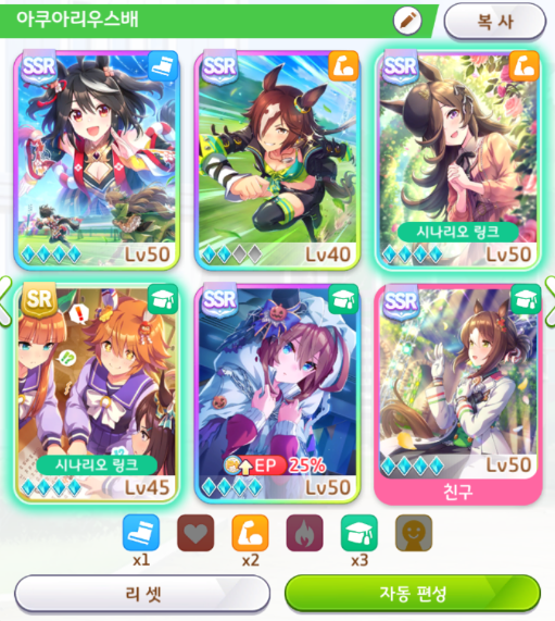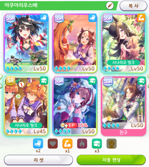 SSR 파워 오구리 캡 + SSR 근성 그래스 원더