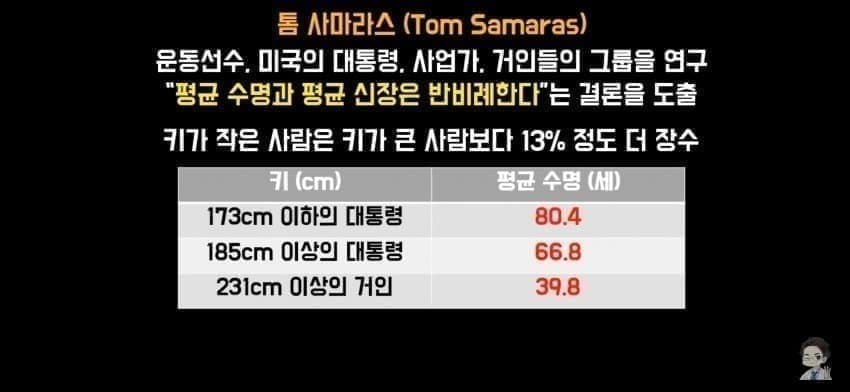 키가 작은 사람은 키가 큰 사람보다 13% 정도 더 장수