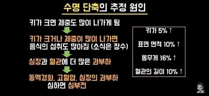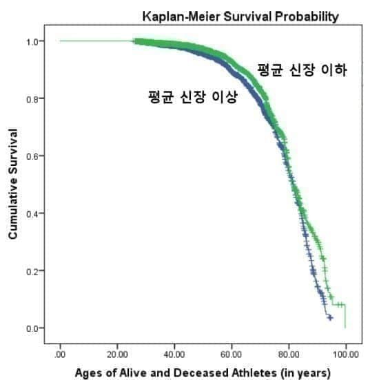 175.3cm 이하는 175.3cm 이상보다 평균 수명이 4.95년↑