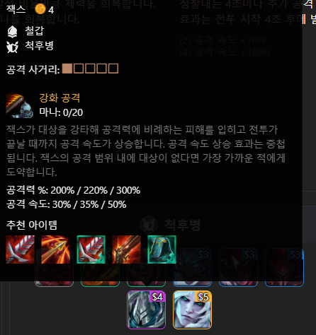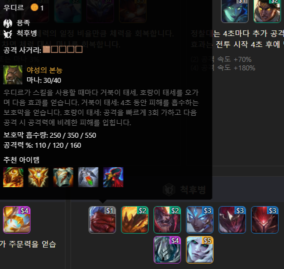 전투 시작시 보호막을 얻고 매초 추가 공격력 획득
