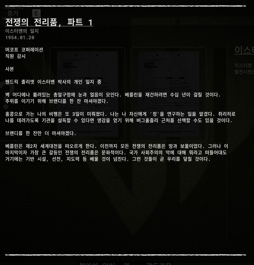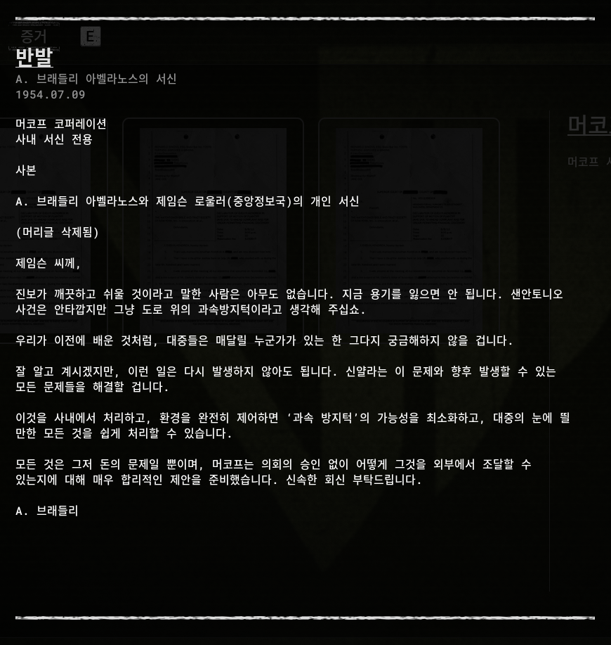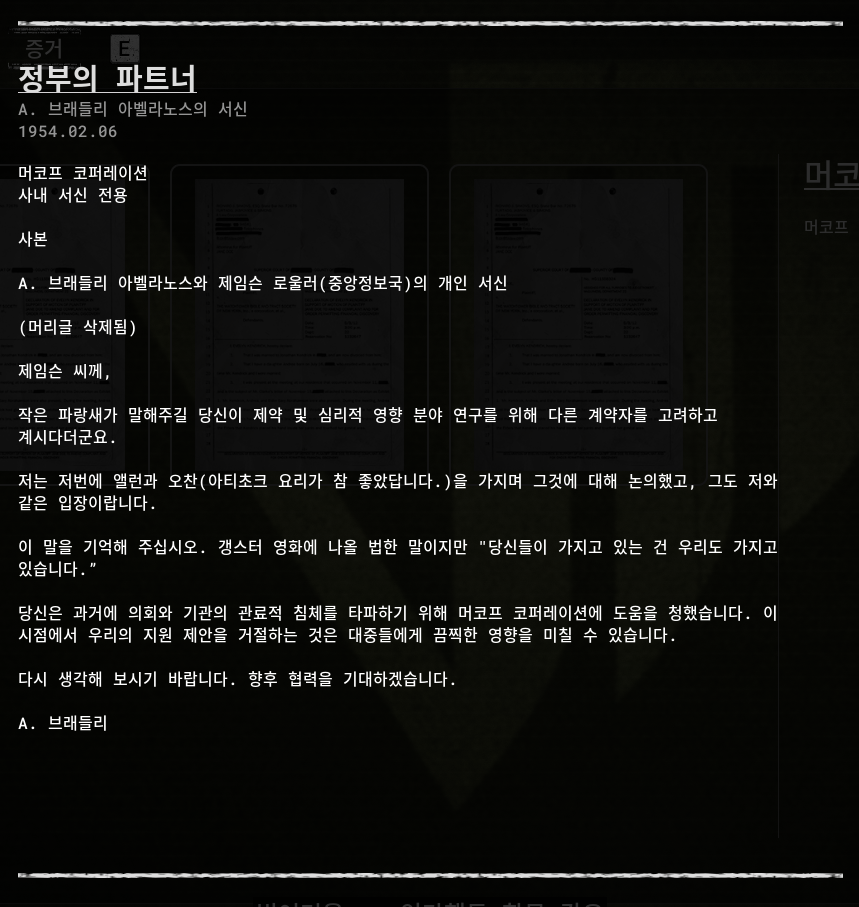 증거(아이템)을 획득을 해서 알 수 있습니다.