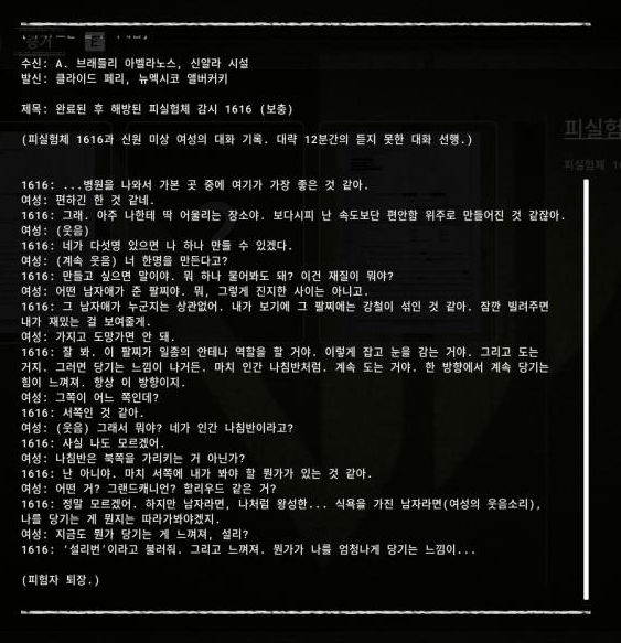 스토리라인 12 피실험체 1616, 해방