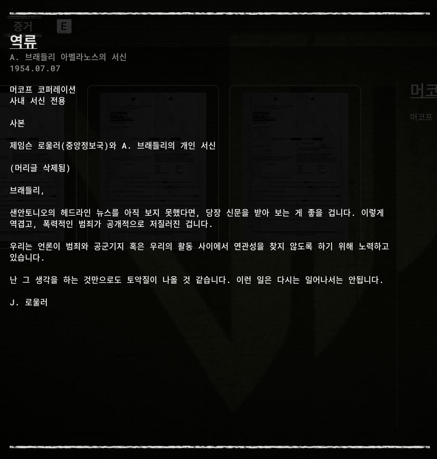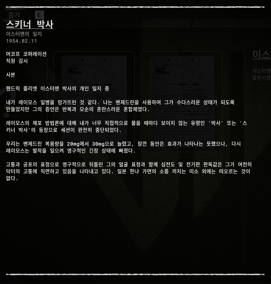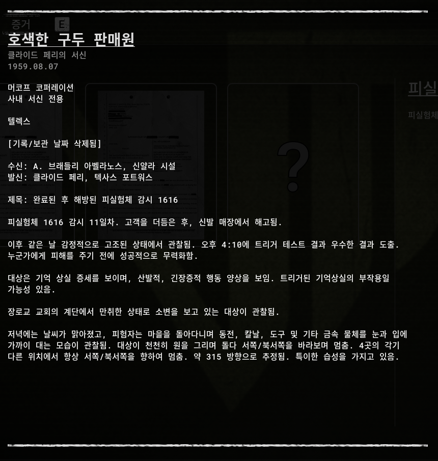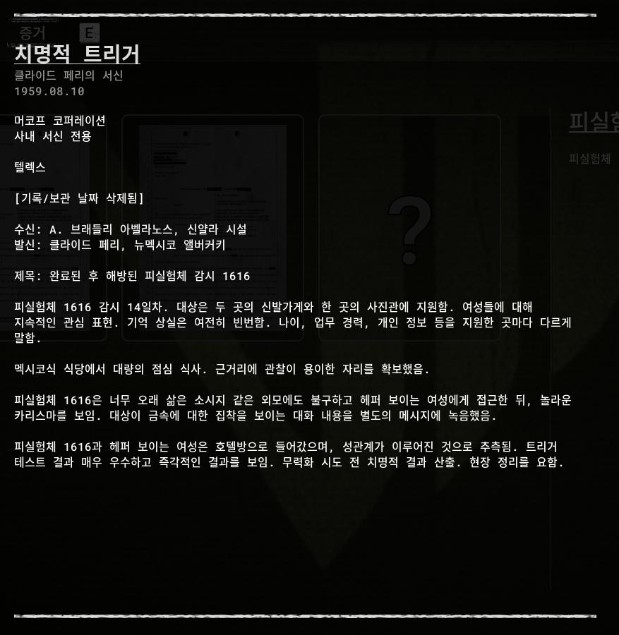 세계관 스토리 라인 증거 정보 [1] 더 아웃라스트 트라이얼 (THE OUTLAST TRIALS)의 세계관 스토리 라인은 증거(아이템)을 획득을 해서 알 수 있습니다. 자료를 모아서 정리했습니다. 스토리라인 01 이