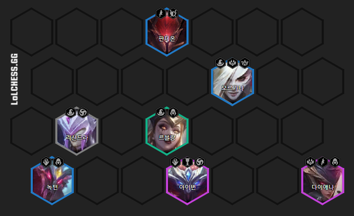 르블랑 + 녹턴 + 판테온를 3성 해주시는게 가장 좋습니다.