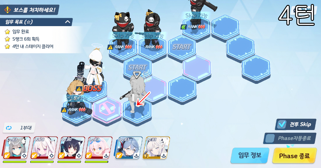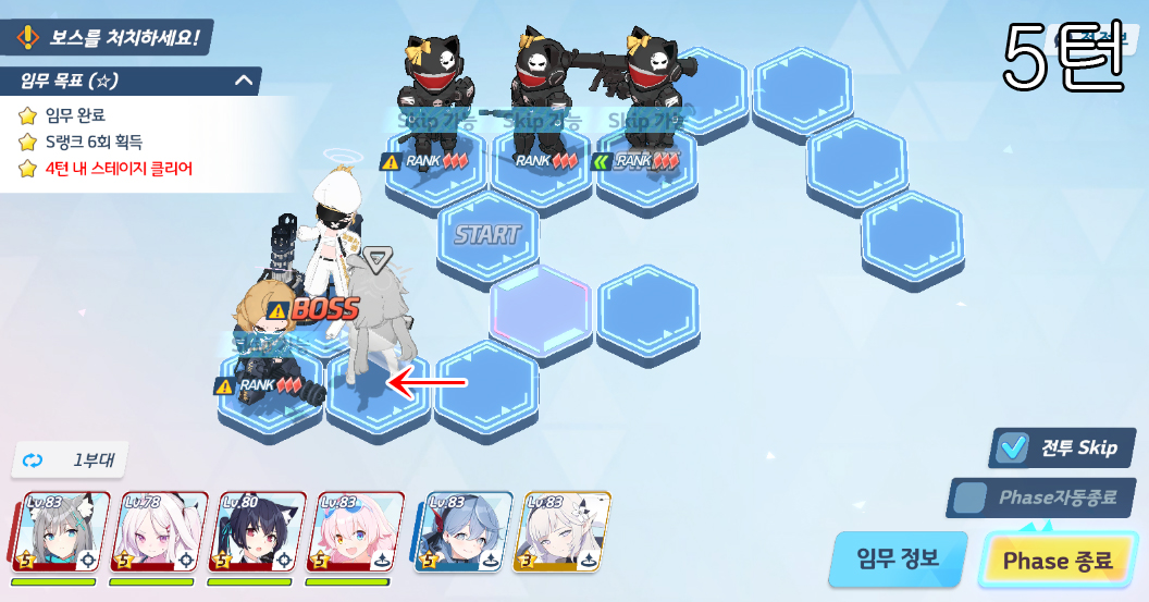 수시노 왼쪽 1칸 이동 후 턴 종료로 마무리 합니다.