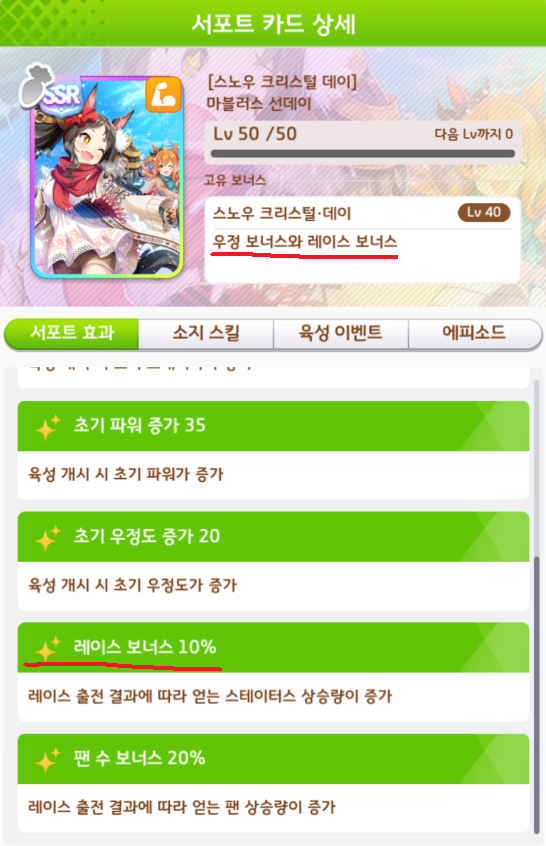 레이스 보너스 최소 50%이상 맞춰서 육성을 합시다.