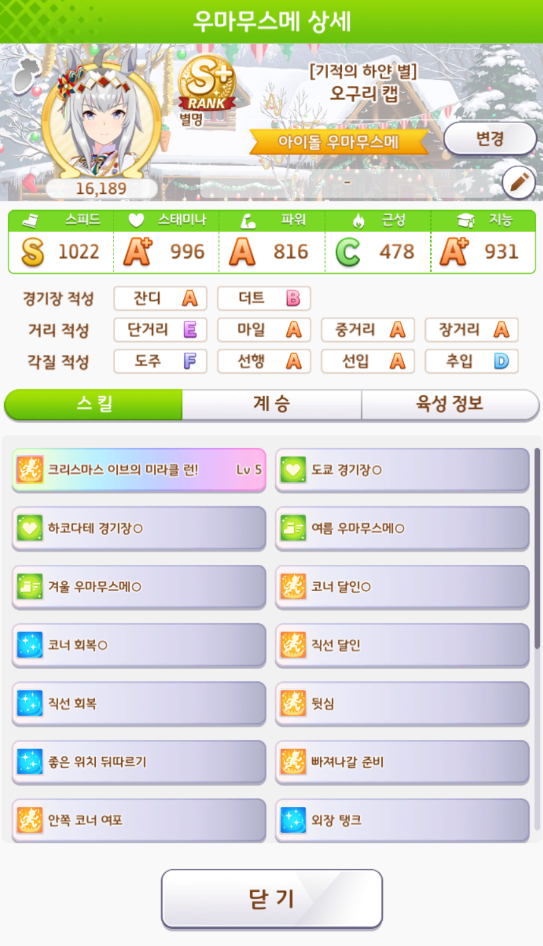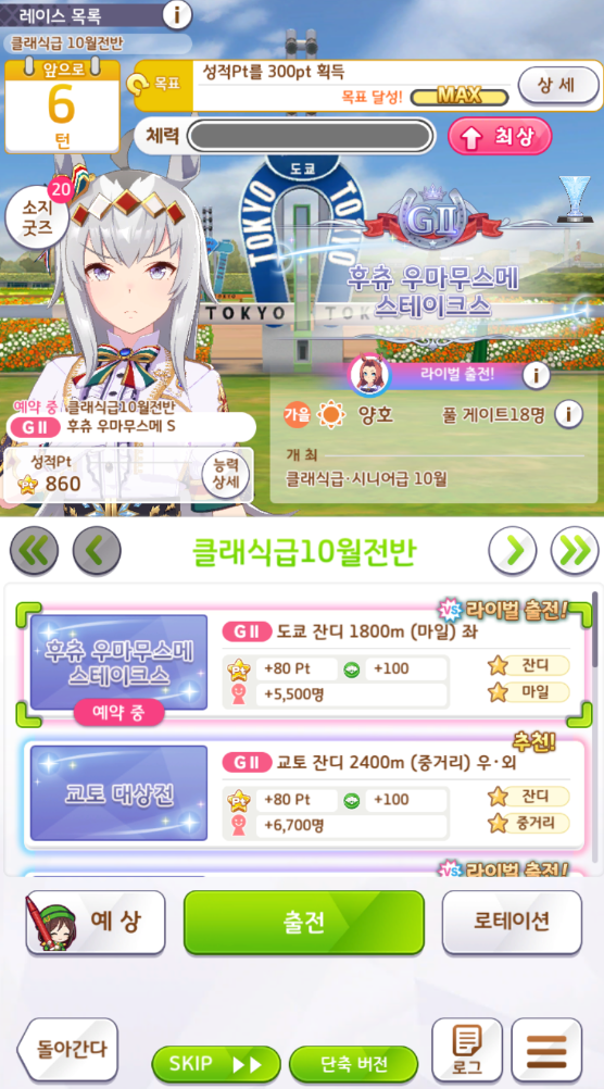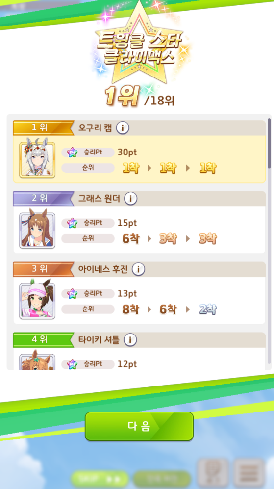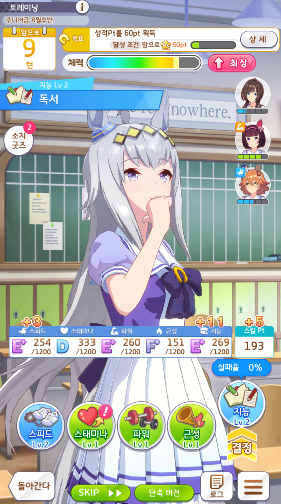 마지막 6턴 그래도 최선을 다해서 육성을 했습니다.