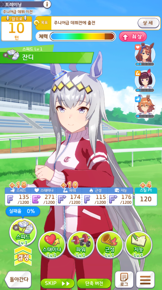 그 다음 우정 트레이닝 1개(스피드)가 나왔습니다.