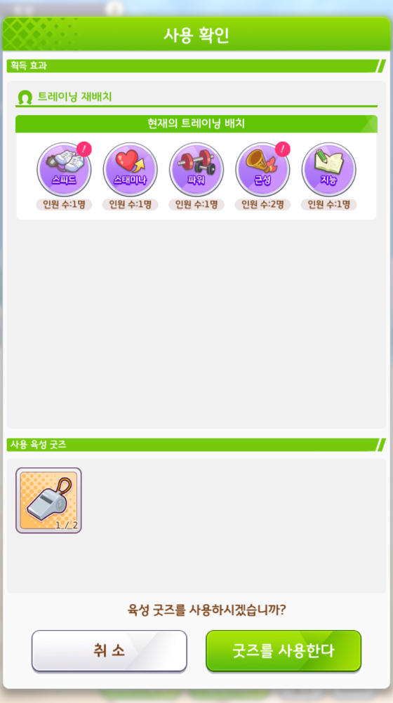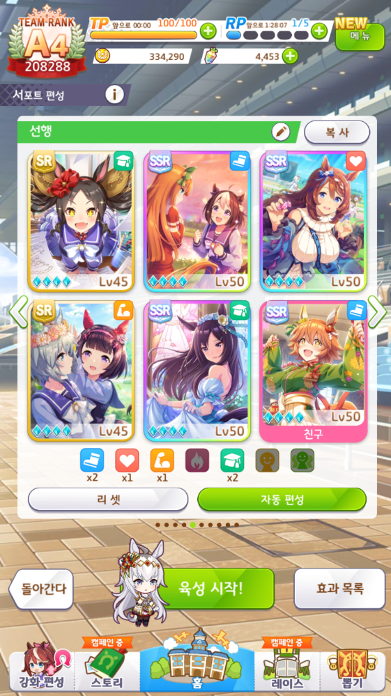 트레이닝은 서포트 카드가 많은 쪽으로