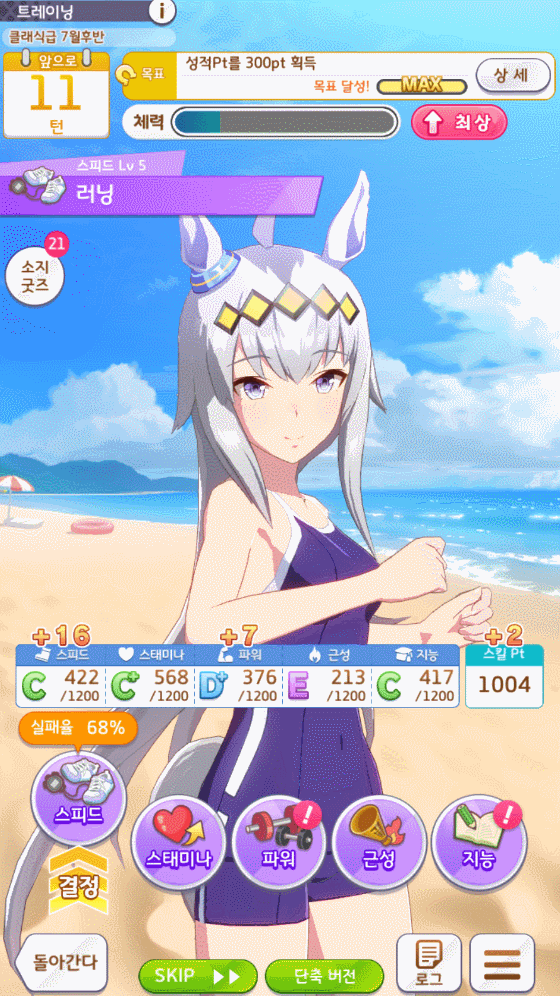 유일하게 장거리는 근성+지능(근지) 서포트 육성이 안됩니다.
