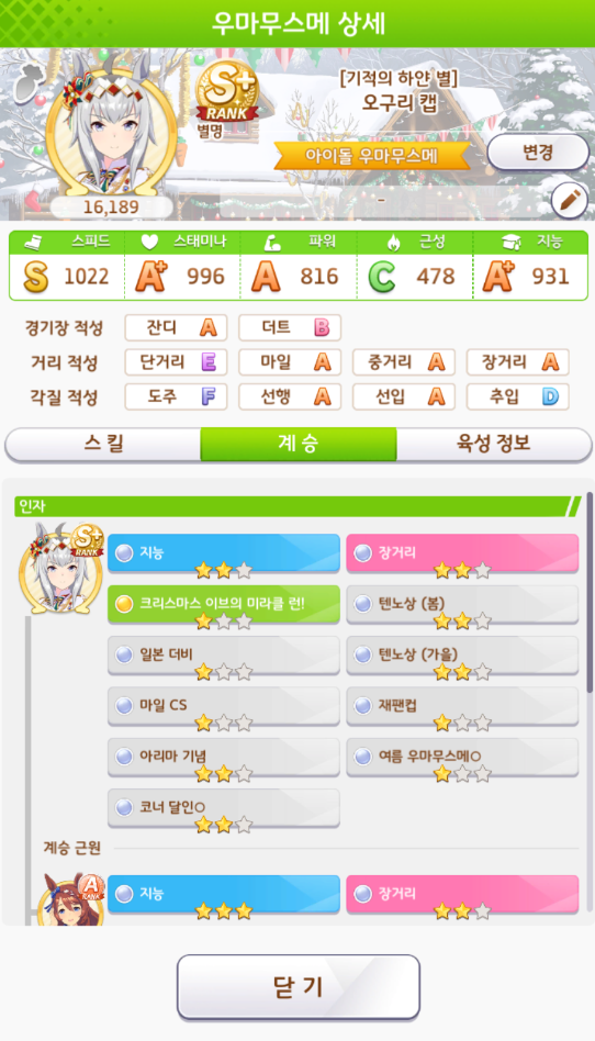 다음에는 SS등급이상 강한 우마무스메로 키워줄게!